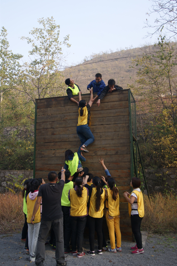 面對4.2米高的筆直木板墻,沒有任何工具,怎么樣才能跨越?“翻越畢業(yè)墻”訓練項目就是要考驗人們的合作意識,團隊協(xié)作精神。因為光靠單一個人是無法完成的,大家必須通力合作,才能互利共贏。畢業(yè)墻訓練讓張連有感觸頗深,“只要大家團結一致,齊心協(xié)力迎難而上就一定能夠克服所有困難。”