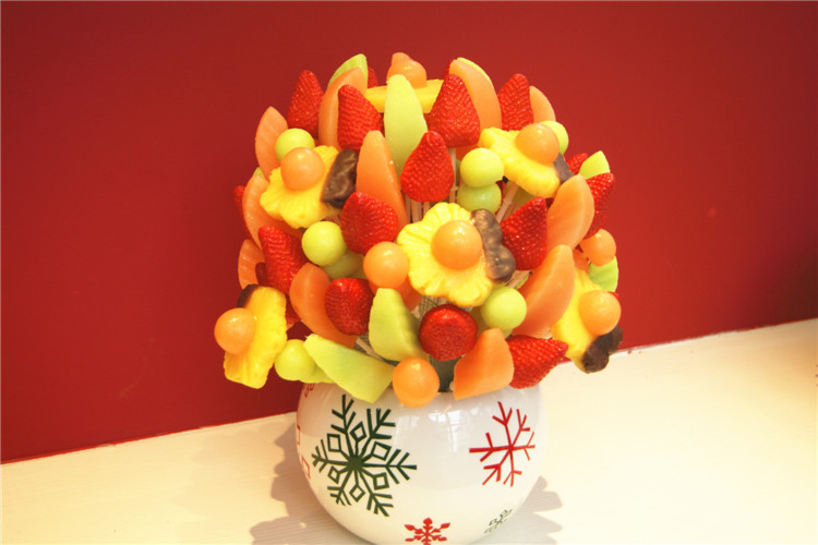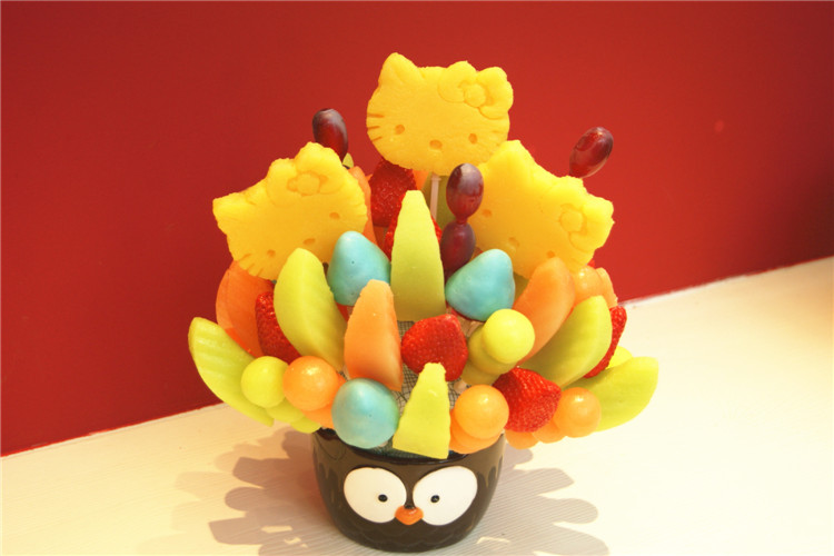 果麗美水果花采用的水果均選自全球最優(yōu)產(chǎn)地,菠蘿、香蕉來(lái)自菲律賓,網(wǎng)紋瓜來(lái)自緬甸、哈密瓜來(lái)自新疆、草莓為中國(guó)有機(jī)、紅提來(lái)自美國(guó),搭配費(fèi)列羅巧克力、美國(guó)杏仁、菲律賓椰蓉等進(jìn)口輔料,只為給你與眾不同的快樂(lè)!