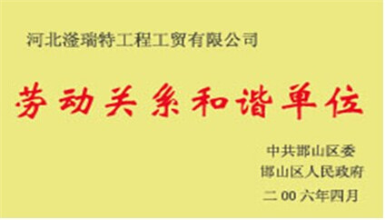 滏瑞特成立以來,被省、市相關(guān)部門授予“河北省首屆百家知名民營(yíng)企業(yè)”、“河北省五一獎(jiǎng)狀”、“ 河北省信用良好企業(yè)”、“河北省消費(fèi)者信得過單位”、“河北省文明誠(chéng)信市場(chǎng)”、“工商聯(lián)合會(huì)優(yōu)秀會(huì)員企業(yè)”、“守合同重信用企業(yè)”、“捐資助學(xué)先進(jìn)單位”、“援建災(zāi)區(qū)貢獻(xiàn)企業(yè)”等榮譽(yù)稱號(hào),深受社會(huì)和廣大消費(fèi)者贊譽(yù)。